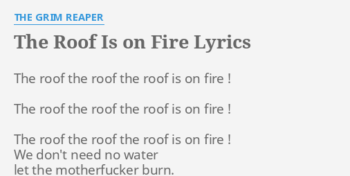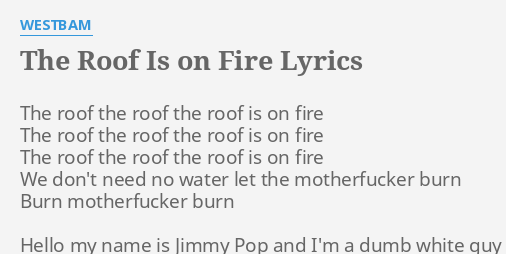 The roof the roof the roof is on fire the roof the roof the roof is on fire the roof the roof the roof is on fire we don t need no water let the motherfucker burn.